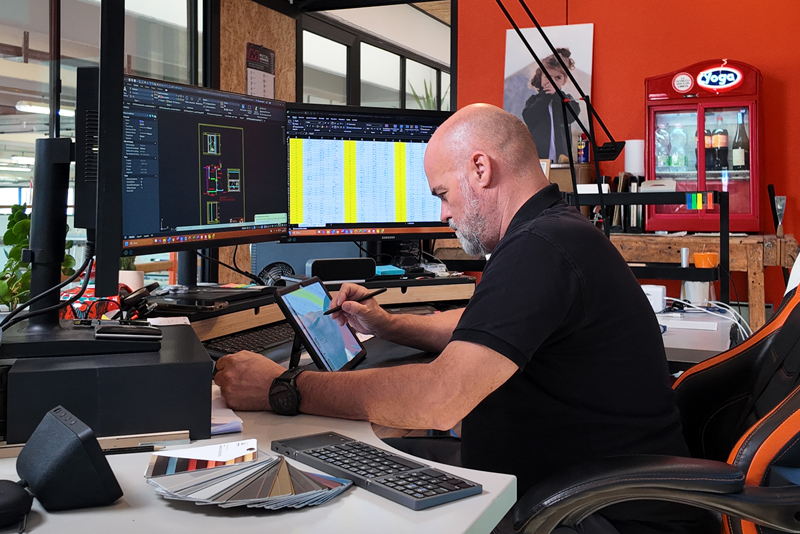 Le idee vengono sviluppate sinergicamente tra le persone che compongono l’organico; ma anche con collaboratori esterni, capaci di realizzare qualsivoglia elemento venga appositamente progettato per l’esecuzione ottimale delle forniture; i briefing aziendali e i frequenti sopralluoghi in cantiere consentono una costante e scrupolosa gestione delle commesse, di cui in questa pubblicazione diamo solo alcuni esempi. La produzione, che parla il linguaggio di chi la adotta, è molto versatile ed è ben lungi dal senso dell’improvvisato: molto spesso le richieste della Clientela vengono discusse e riviste con apporti di soluzioni che a volte sovvertono l’idea iniziale.